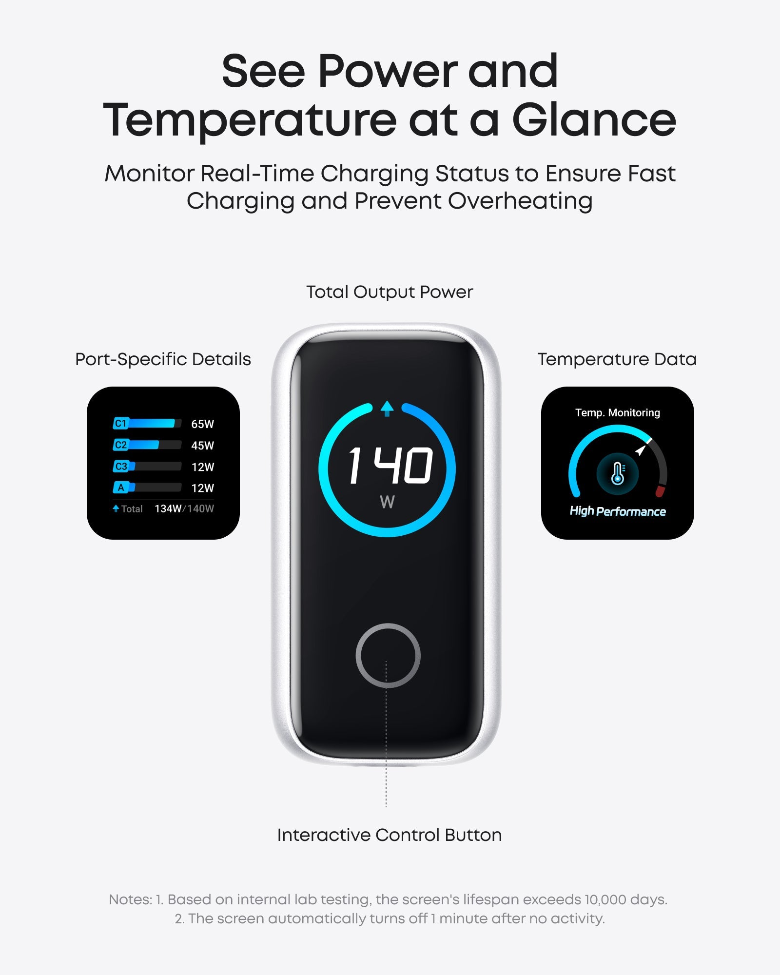 - Monitor with Ease and Clarity: The high-definition color display provides a detailed view of the charging status, temperature, and port details, keeping you fully informed.